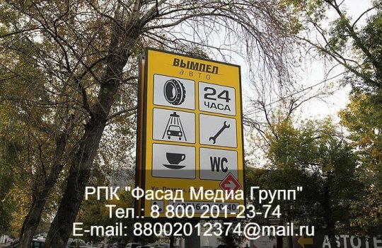 РПК «Фасад Медиа Групп» изготовило и установило дорожный знак для нашего клиента ООО «Вымпел». Компания оказывает сервисные услуги по ремонту машин. Дорожный знак установлен на 1 год с возможностью дальнейшей пролонгации