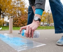 Многие клиенты нашего рекламного агентства спрашивают: каким образом происходит нанесение рекламного изображения на асфальте? На этот вопрос мы отвечаем, что нанесение рекламы на асфальте осуществляется при помощи трафарета и балончика с красокй. В работе мы используем специальные влагоустойчивые материалы, которые сохраняются на поверхности в течение продолжительного времени.