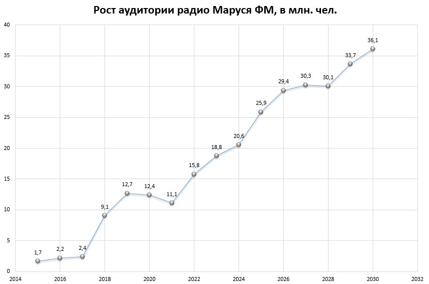 Показатели аудитории радио Маруся ФМ по России: