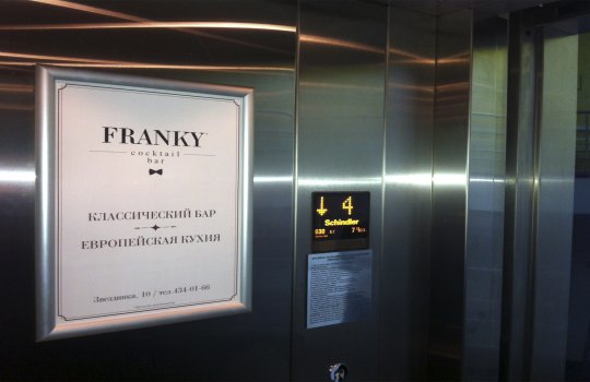 Пример рекламы в лифтах в бизнес-центрах: